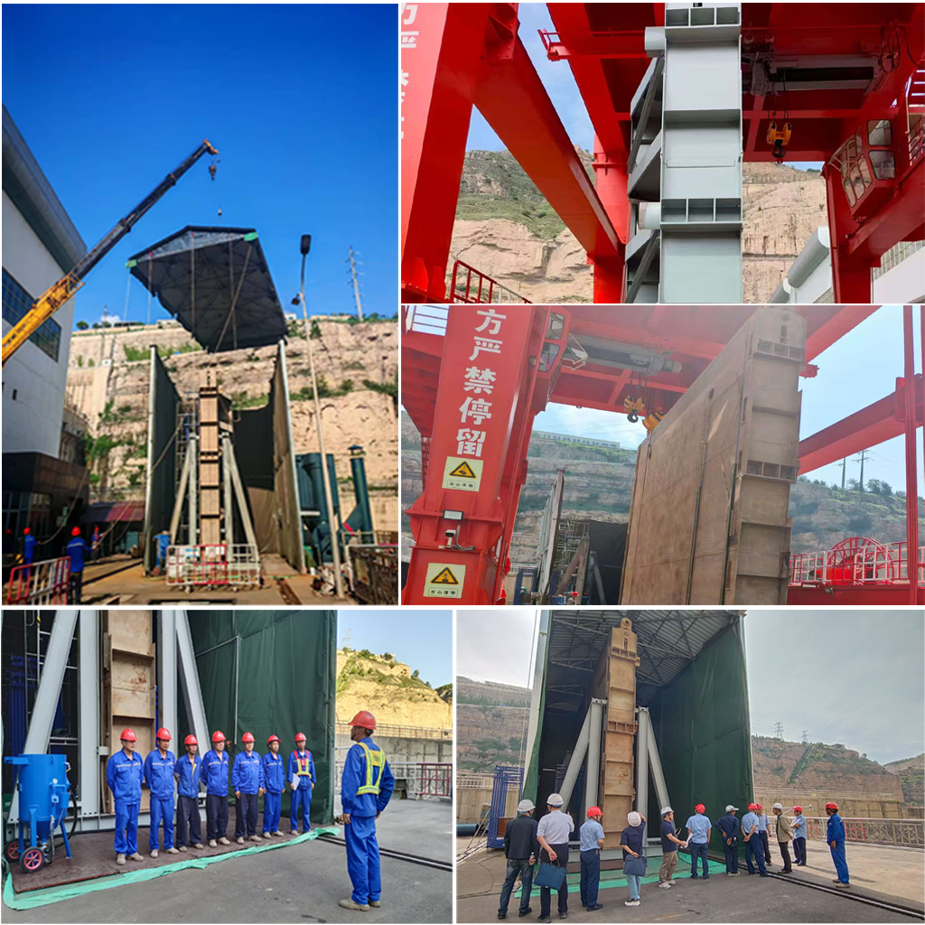 在項(xiàng)目籌備階段,工程團(tuán)隊(duì)便展現(xiàn)出高度的專業(yè)性與嚴(yán)謹(jǐn)性,詳細(xì)編制了四措兩案,涵蓋施工組織、技術(shù)、安全、質(zhì)量保證措施以及施工方案和應(yīng)急預(yù)案 。同時(shí),針對(duì)項(xiàng)目中的關(guān)鍵環(huán)節(jié),如閘門支撐、臨時(shí)用電、防護(hù)棚搭設(shè)等,分別制定專項(xiàng)方案。其中,閘門支撐方案根據(jù)閘門的結(jié)構(gòu)和重量,設(shè)計(jì)出可靠的支撐系統(tǒng),保障閘門在檢修過程中的穩(wěn)定性;臨時(shí)用電專項(xiàng)方案確保施工現(xiàn)場(chǎng)用電安全,從電源接入點(diǎn)、線路敷設(shè)到設(shè)備用電管理都做了細(xì)致規(guī)劃;防護(hù)棚搭設(shè)專項(xiàng)方案則充分考慮現(xiàn)場(chǎng)環(huán)境,國(guó)內(nèi)首次量身定制了抗8級(jí)大風(fēng)的裝配式鋼結(jié)構(gòu)防護(hù)棚,棚頂為可拆卸式便于閘門倒運(yùn),棚內(nèi)配備了照明、通風(fēng)除塵設(shè)備、可燃?xì)怏w和粉塵監(jiān)測(cè)儀等,并首次創(chuàng)新使用電動(dòng)升降式腳手架,為施工人員和設(shè)備提供安全便利的作業(yè)空間,有效防止惡劣天氣對(duì)施工的不利影響。